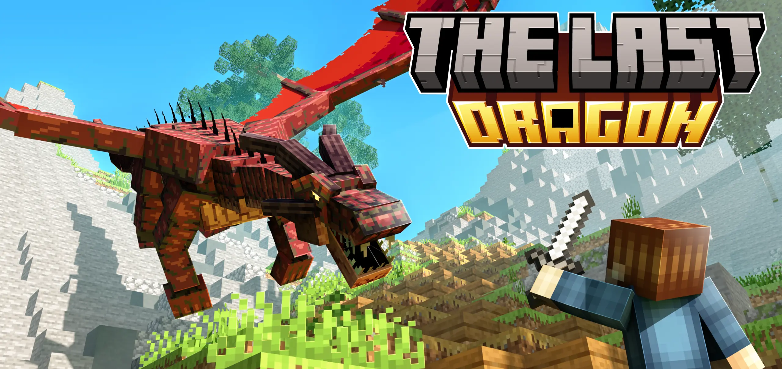 The Last Dragon Mod adds a huge tameable, rideable dragon to Minecraft Bedrock/MCPE, with wild dragons and eggs spawning in the world, letting you tame one, saddle up, and fly by aiming your view up or down.