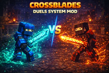 CrossBlades - Duels System Mod adds a fair 1v1 duel setup to Minecraft Bedrock, saving your inventory before fights, loading kits and arenas automatically, then restoring everything and sending players back (or to a lobby) when it’s over.