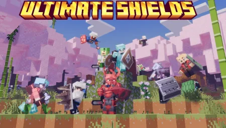 Return Ultimate Shields Mod adds a variety of improved shields to Minecraft Bedrock—different sizes and special-function shields, including options with fire-immune, netherite-like behavior—while staying compatible with other addons so you’re not forced to pick just one shield pack.