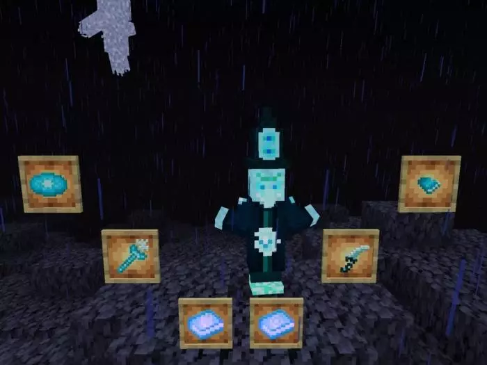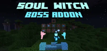 To face the boss, craft a Malice Lurer and find a ghostly-brick altar with a Haunted Core, then use the lurer to unleash the Soul Witch. She teleports, duplicates, summons spirits, and throws mixed projectiles, so clear trees, set a bed, and keep distance—freeze adds with the whistle and punish her windows. Beat her and assemble the boss track from dropped fragments, then chase the loot: Spirit Sceptre (summon friendly ghosts), Soul Slasher (wither, bonus vs ghosts/witches), or a Soul Tome (sonic blasts or fireballs), plus a Wicked Hat or Wicked Robe with handy buffs and poison immunity. SOUL WITCH: Spooky New Boss & Ghosts mod turns Halloween season into a real fight night.