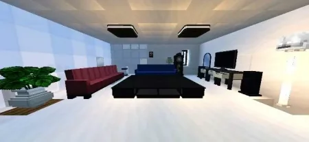 Think apartment tour, but playable. With Moden Functional Furniture Mod, couches aren’t background props—you sit, settle, and stage conversations. Lamps click on for warm corners, cabinets open for quick stashes, and that slick TV stand finally anchors a room instead of being a placeholder. The whole set leans modern, so screenshots pop without clashing with your usual wood-and-glass palettes in Minecraft Bedrock.