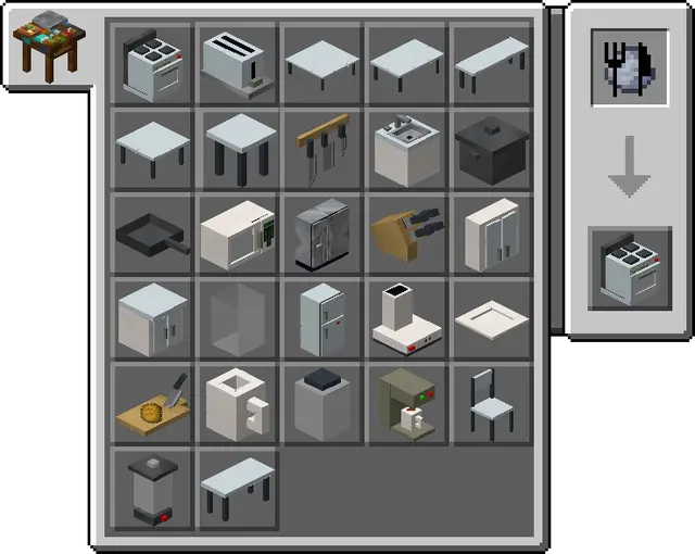furniture-block decor Mod is for builders who want rooms to tell a story, not just hold a bed. Dress a living room around a couch and low table, wrap a corner kitchen with counters and a sink, then finish a compact bath so your base feels like a place you actually wake up in. The extra touches—plants, wall pieces, and cleaning gear—sell the scene the moment you step through the door.