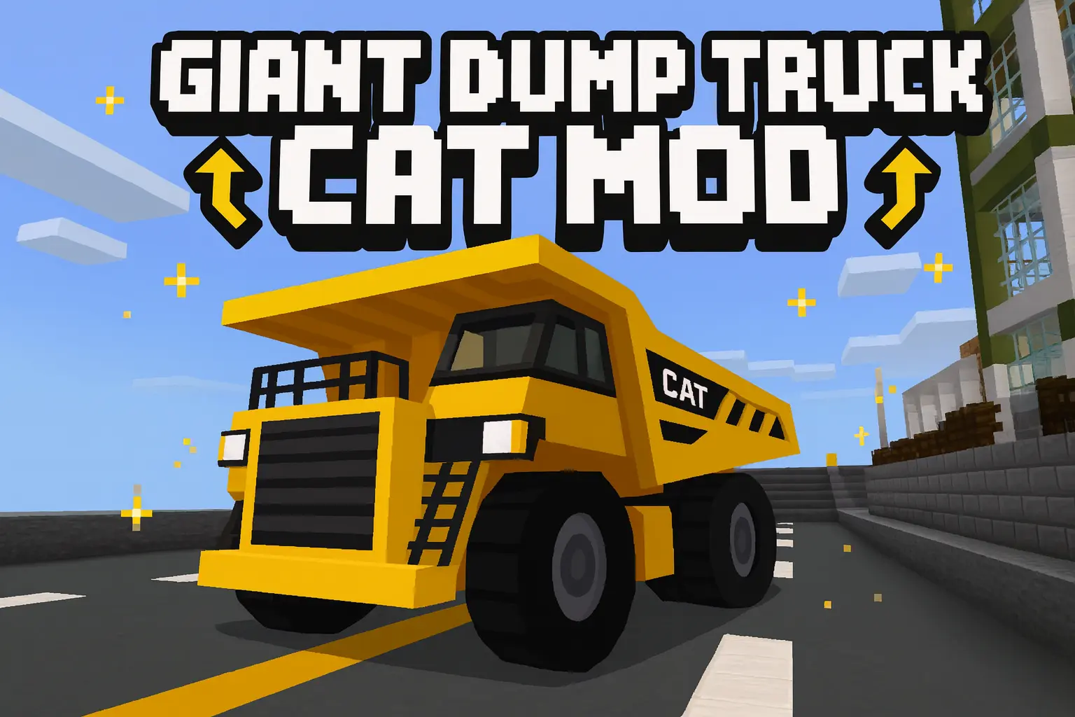 Giant Dump Truck CAT Mod is about scale. You’re not puttering across a field—you’re bringing in a heavy rig that makes your world feel like a proper job site. Spawn it from the inventory, idle at the pit gate, and rumble through desert cuts or mountain switchbacks like you’re moving tonnage. On creative showcase maps it’s instant set dressing; in survival-themed servers it gives roads, depots, and cranes an actual reason to exist.