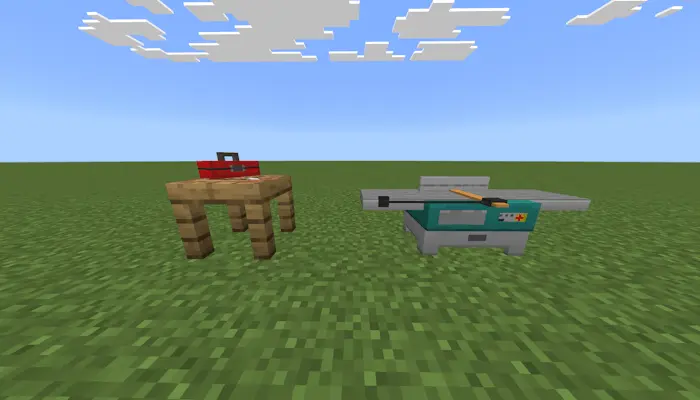 Nic’s Carpentry & Furniture Mod is a builder’s dream that still feels perfectly survival-friendly. Start at a Stonecutter, turn it into the Carpenter Workbench, then open the green recipe book to see everything you can make. Tables and chairs need screws, so batch a handful first, drop the bench next to your wood chest, and you’re cruising—no command fiddling, just clean crafting in Minecraft Bedrock. Because it’s fully texture-pack compatible, your oak, spruce, birch, or custom set will match whatever visuals you’re already running.