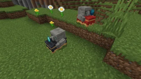 Tuff Golem | Concept Addon finally makes that vote mob feel real in your Bedrock world. You spawn one just like the other golems: drop a Tuff block, stack a Carved Pumpkin on top, and your little stone buddy wakes up. From there you can dress it up with any carpet color, and that cloth isn’t just cosmetic—only Tuff Golems wearing a carpet are allowed to hold items. Hand them tools, food, or special drops and they’ll stand there like living display stands in your base.