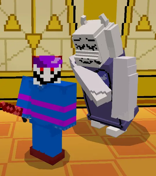 Souls are the real power system here. In multiplayer, taking down another player drops a soul; in single-player you can farm them from villagers if you’re willing to go that dark. Collect six different souls (not counting Determination), combine them, and you get a single item that flips you into “god of that world” mode when used. Or go the other way and spend those same souls, a boss drop, vines, and a monster soul to craft Omega Flowey and turn your map into a full-on UNDERTALE boss arena. Undertale Mod keeps the core Minecraft loop alive but wraps it in a story and progression path UNDERTALE fans will recognize immediately.