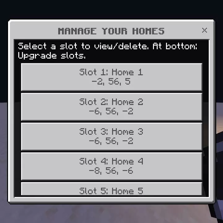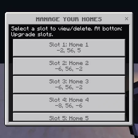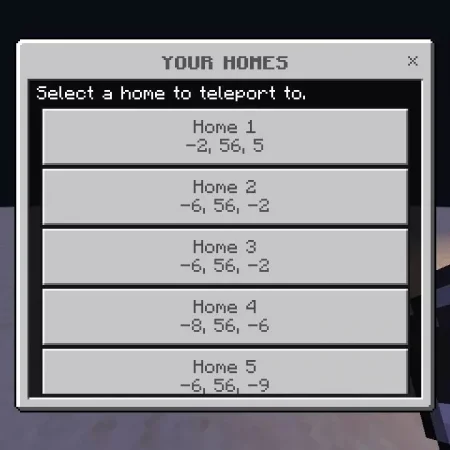 In long-term survival worlds, Save Your Location | Home Mod is perfect for multi-base play. Mark your starter cave, your main mega-base, a remote mine, maybe a mob farm out in the middle of nowhere, and bounce between them as your world grows. No command blocks, no remembering numbers—just your compass and a tidy home menu that always knows exactly where you belong.