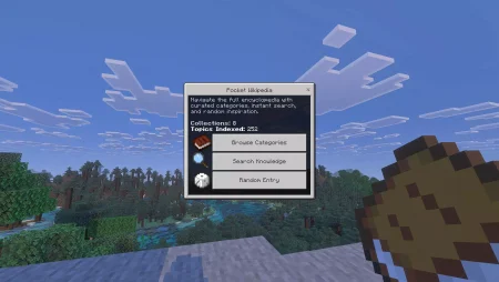 Pocket Wikipedia Mod is also clutch for newer players and returning veterans who forgot half the tech. You can roll random topics when you’re bored, learn small tricks between mining trips, or keep it purely functional and only open it when you’re stuck. Either way, the entire knowledge base stays one right-click away in your survival world.