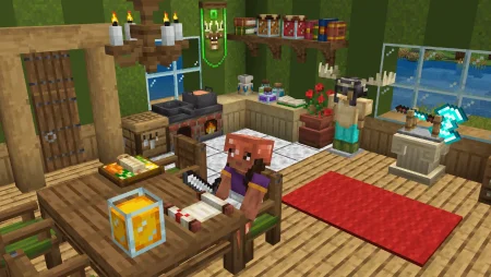 While you’re exploring, Core Craft Mod quietly upgrades everything around you. There are new animals that you don’t have to slaughter to progress, fresh crops and recipes to play with, and rare resources like ruby mixed into your usual mining runs. The Core Craft Wiki Book lives right in your inventory, so whenever you bump into a new mob, plant, or mechanic, you can look it up without tabbing out of the game.
