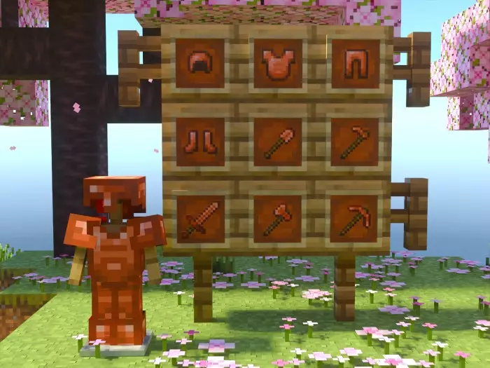 In a fresh world, you punch trees, move into stone gear, and then instead of skipping past copper, you actually want it. Copper pickaxes chew through blocks faster and last longer than stone, but they don’t trivialize the jump to iron. Copper armor gives you a noticeable bump in protection without feeling overpowered, which makes it great for that phase where you’re still scared of caves but itching to explore deeper.