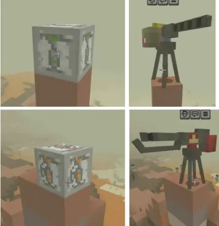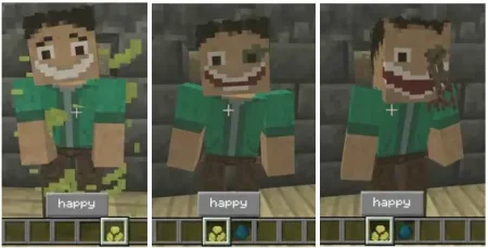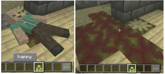 To fight back, you’ve got real tools. Fungicide Bombs convert active fungus into inert decorative blocks you can use as safe perimeters. Anti-spore masks block wither effects from corpses and spores. Human Survivors trade weapons, ammo, masks, and even a flamethrower that melts infected fast. You can also place repairable turrets found in abandoned barrels, turning your MCPE survival base into a fortified bunker holding the line against the Smile Fungus spread.