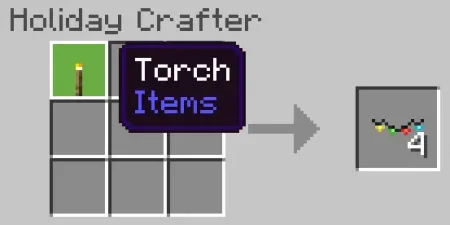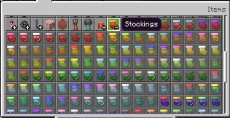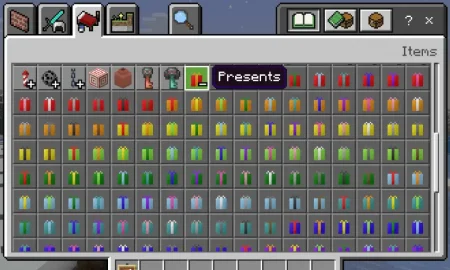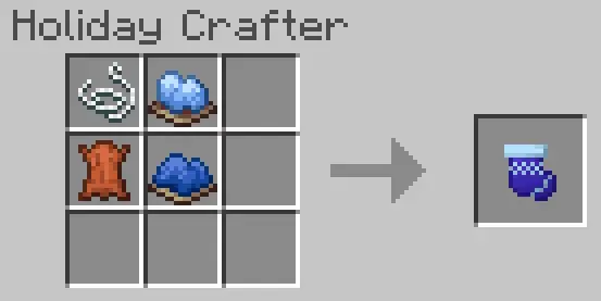 The heart of the addon is the Holiday Crafter. You build it from a crafting table plus red and green wool, then use it to turn regular materials into winter gear. Presents act like temporary shulker boxes: crouch and use one on a chest to “wrap” all its contents, then place and punch the present later to get everything back. Stockings work like festive bundles, crafted with leather, string, and dyes so you can carry a little extra while staying on theme.
