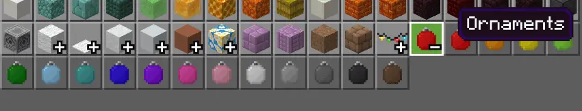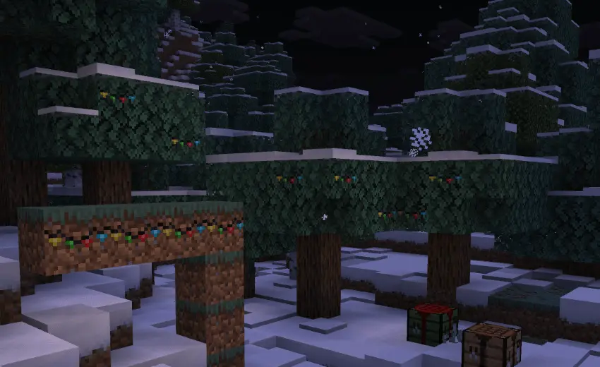 On top of that, Winter Additions (Christmas Additions) Mod loads your world with decorative blocks for proper Christmas streets and living rooms. Christmas lights and garlands hang like vines, with lit garland giving off real light for rooflines and porches. Ornaments dangle under blocks like tiny lanterns, crafted with an iron nugget and any dye, perfect for trees, shop signs, and town squares in your survival world or Realm.