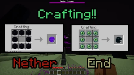 Craftable portals are what keep the challenge playable. Since you can’t walk around to set up normal frames easily, the addon gives you a way to create portals through recipes instead of traditional layouts. That lets you still progress to the Nether and the End while staying locked to your one survival line, turning the whole run into a straight-path challenge you actually have to strategize around.