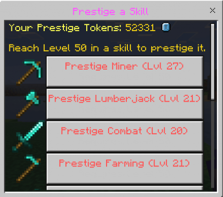 The big hook is how much UI support it gives you. Interactive menus let you manage skills and perks without janky commands, and dynamic XP notifications keep you aware of every gain, whether you’re mining, fighting, or just grinding on a mob farm. As you climb, you’re not just stronger—you’re pushing toward prestige, where you can reset power for long-term bonuses instead of hitting a hard cap and getting bored.