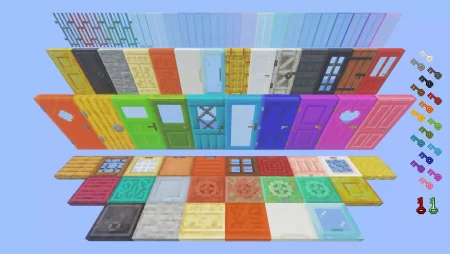 The real fun starts when you use the key system. Redstone Keys can lock a door so it only opens with power, Slime Keys freeze it in place as a visual partition, and colored keys match specific colored doors for adventure maps or secure rooms. In a Bedrock survival world or server, QB Doors Mod lets you design spaces that feel custom without breaking the vanilla vibe.