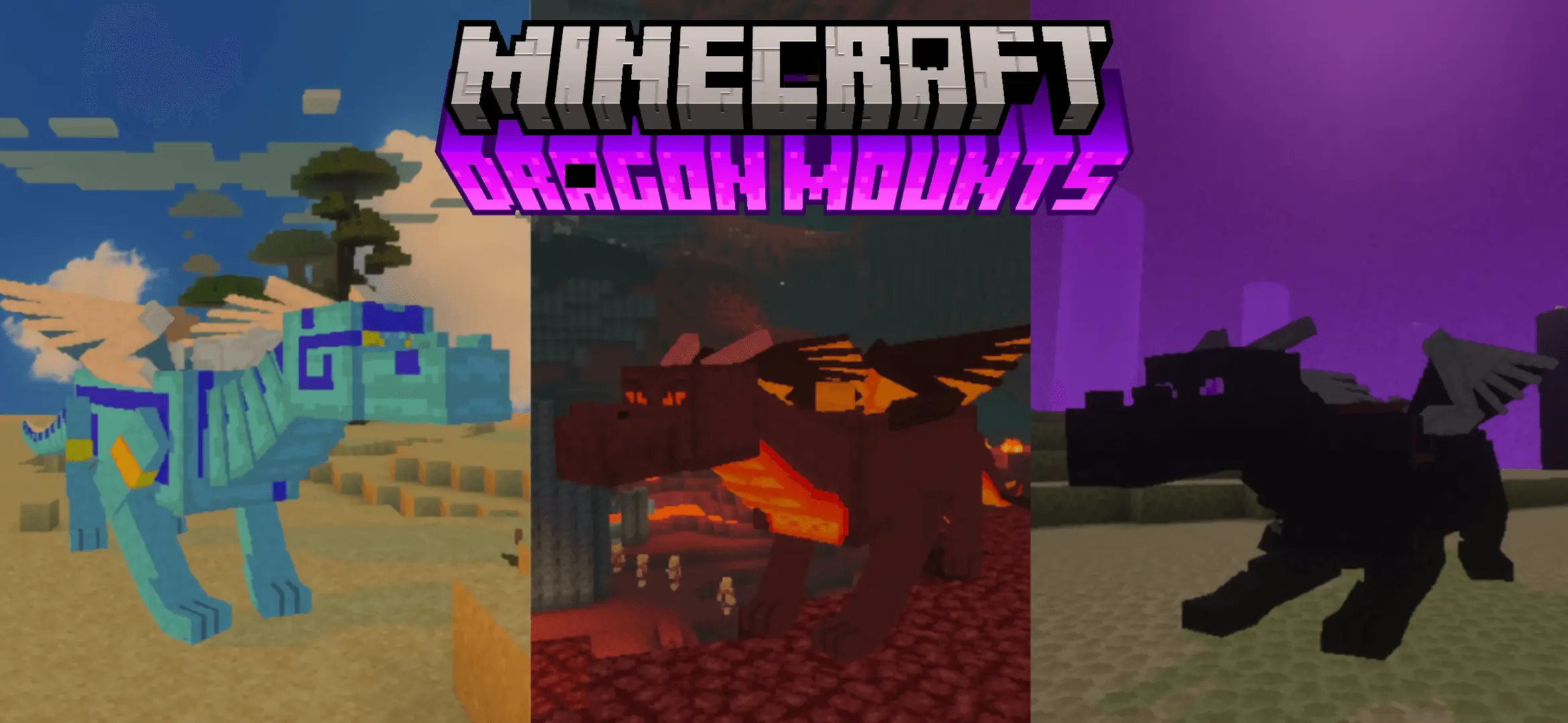 Control and upkeep are simple too. You can tell your tamed dragon to lay down or stand up by interacting with it, which is great for keeping it out of the way at base. To ride, you slap a saddle on it and interact while not holding an action item. If it gets hurt, you can heal it with raw fish, chicken, beef, or porkchop for four hearts, or rotten flesh for two hearts. One thing to note: the Dragon Mounts add-ons have to be played by themselves, not together, so don’t stack multiple versions at once.
