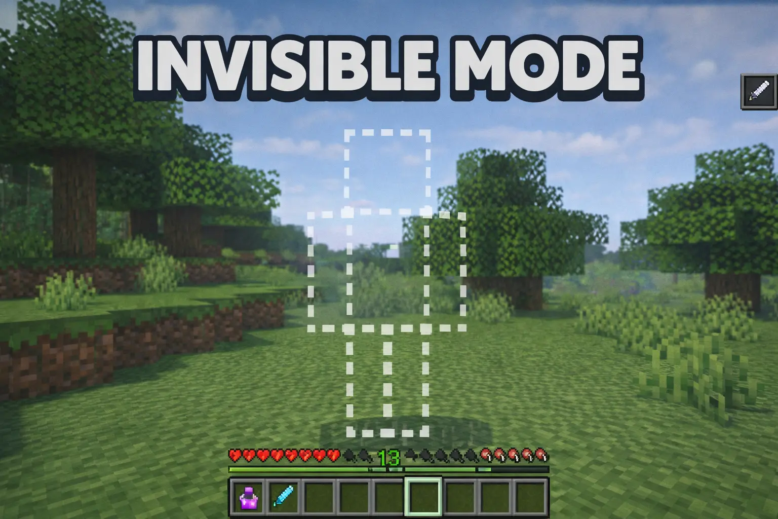 INVISIBLE MODE Mod is one of those quick, fun utility addons that instantly changes how you move around your world. The main mechanic is super straightforward: when you sneak, you go completely invisible for 10 seconds. That short timer makes it feel like a skill you pop at the right moment instead of some permanent “cheat mode,” which keeps it interesting in survival and multiplayer.