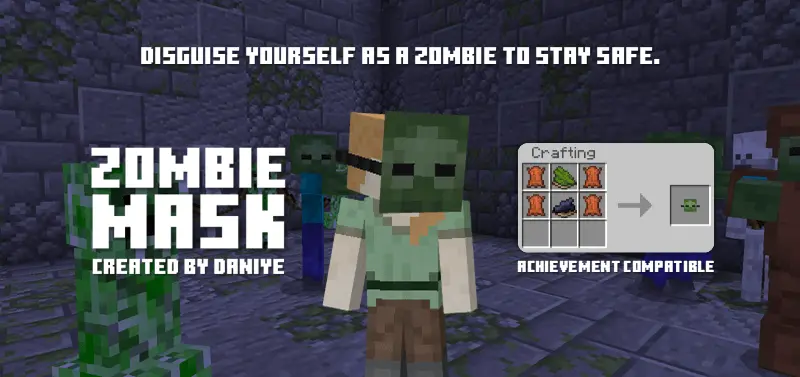 Zombie Mask Mod is perfect if you love survival but hate getting jump-scared into a death screen every time you’re just trying to build, mine, or explore. The whole idea is simple: craft and wear the Zombie Mask, and most hostile mobs will treat you like you’re one of them. As long as you don’t swing first, they won’t start beef, which makes nighttime travel and cave runs way less stressful while still keeping the world on normal difficulty with achievements.