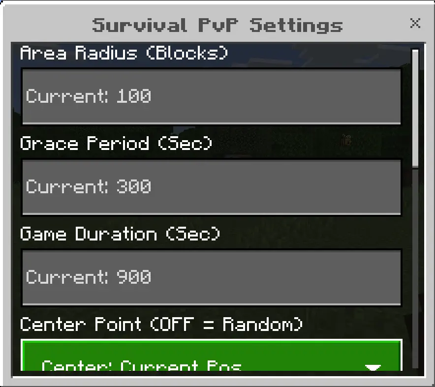 The map start is sick for replay value. If you enable “Random Center,” it spreads players to a totally random location far out (around 1000–3000 blocks away) so every round feels like fresh terrain. It also includes fall-damage protection on teleport so nobody gets griefed by spawn RNG.