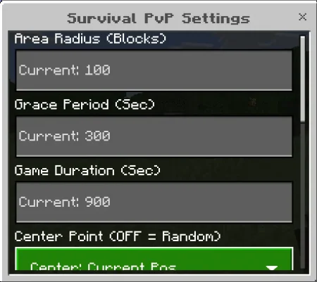 Simple Survival PVP Mod is basically “host a Survival PvP event without babysitting it.” An admin can start the game with a simple command or UI, and the addon handles the whole flow: first there’s a grace period where PvP is off so everyone can loot and gear up, then it flips into the combat phase, and later sudden death kicks in with a border that shrinks over time to drag everyone toward the middle. It even detects the last player alive automatically and ends the match with fireworks, so you’re not arguing in chat about who won.