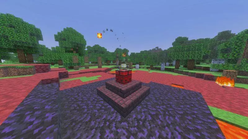 Starting says a lot about the tone. To trigger everything, you craft a Pandora’s Box block, place it, then break it to summon the Totem of Armageddon. After that, you’re on a 7-day timer before the whole environment turns into “hell.” That setup is perfect for challenge runs because you immediately get a goal: build a real base, gather supplies, and prepare escape plans before the countdown hits zero.