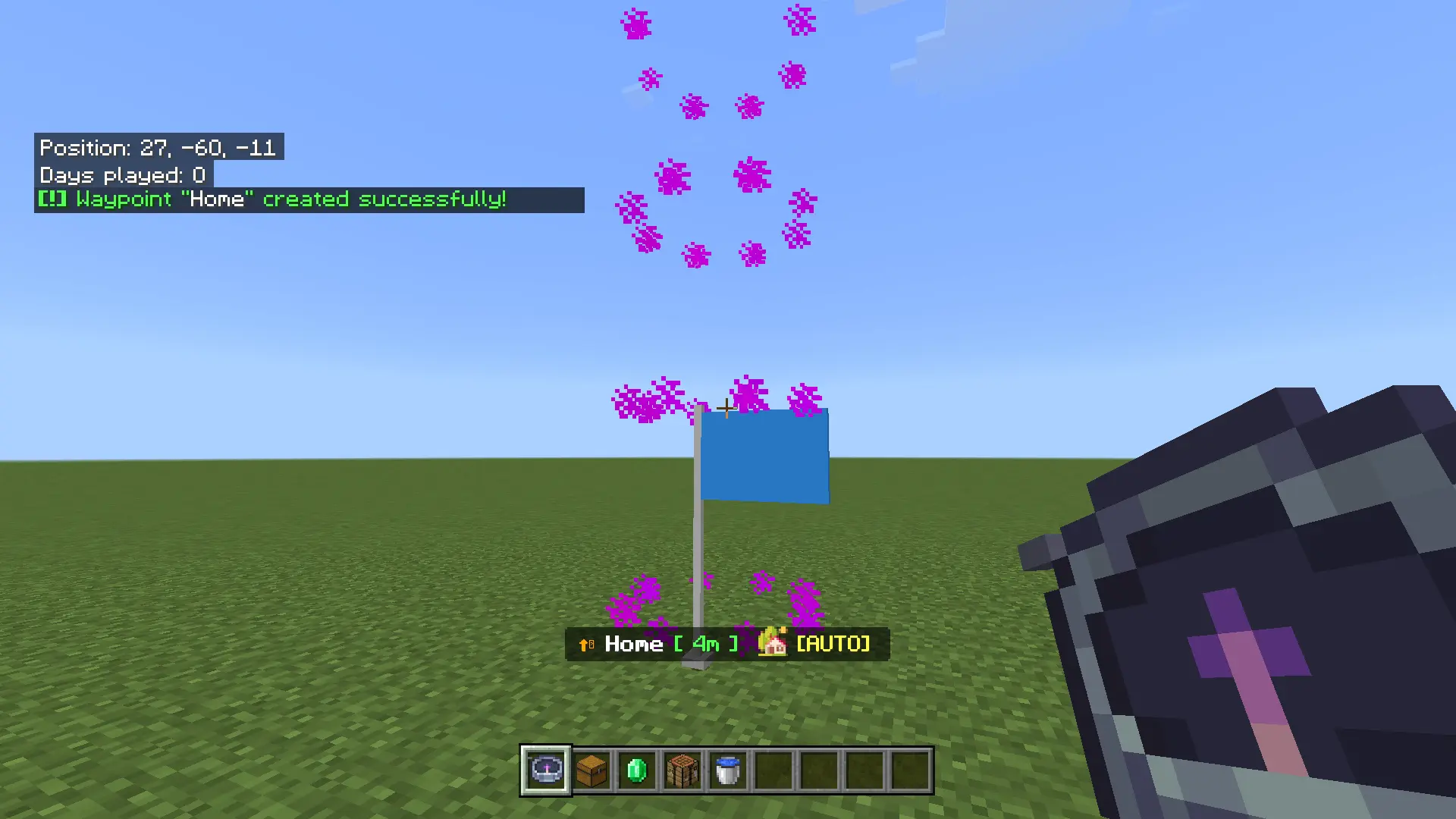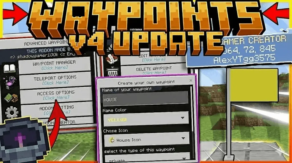 Advanced Waypoint Mod replaces the old “write coords in chat and hope you remember” routine with an actual waypoint manager that feels like it belongs in Bedrock. When you hold the manager item, your Action Bar turns into a live compass that points to your target and shows distance plus an above/below indicator, so you can stop guessing whether your base is up a mountain or down in a cave.