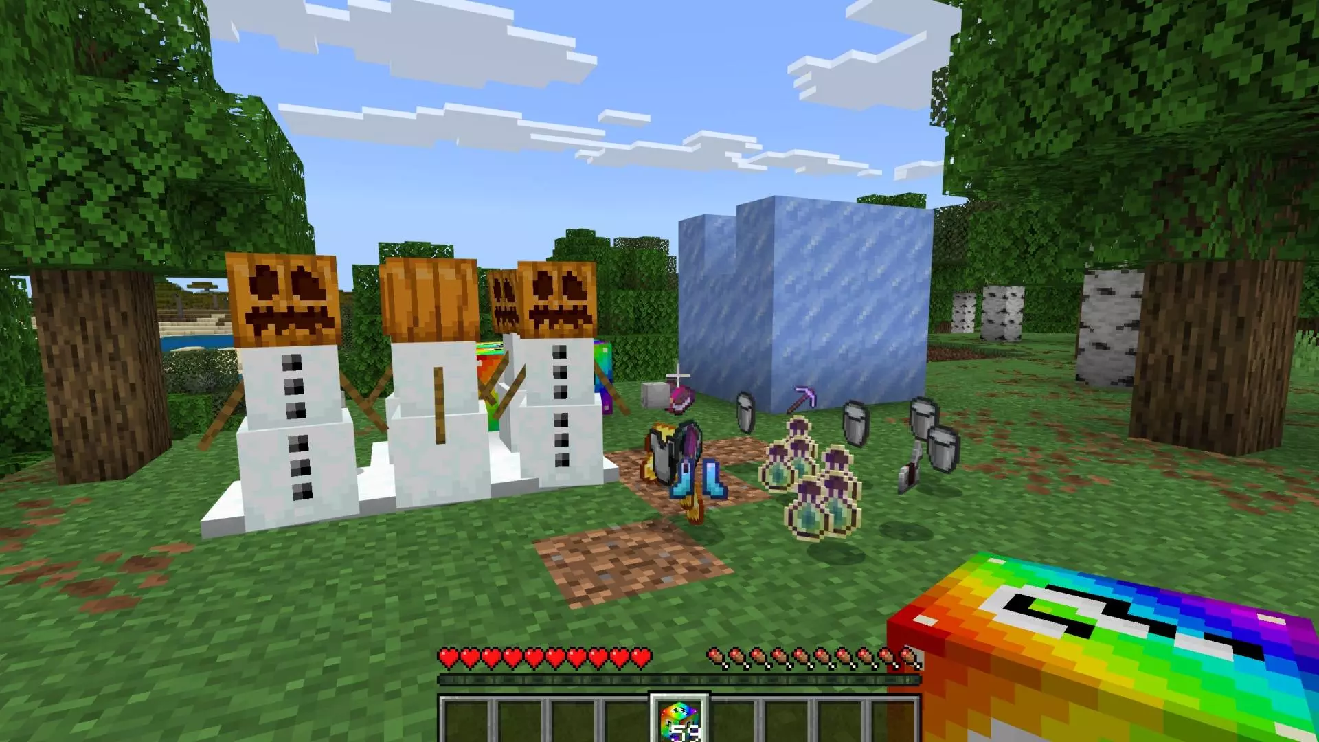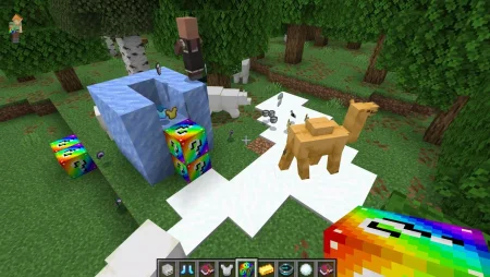 What makes it fun is how easy it is to turn into a whole game night. In a survival world, you can use Rainbow Blocks Mod as a reward system—break one after finishing a build, clearing a cave, or beating a tough fight. On a server with friends, it turns into instant chaos: everyone crowds around, someone opens a block, and the whole area either erupts into celebration or total panic depending on what pops out.