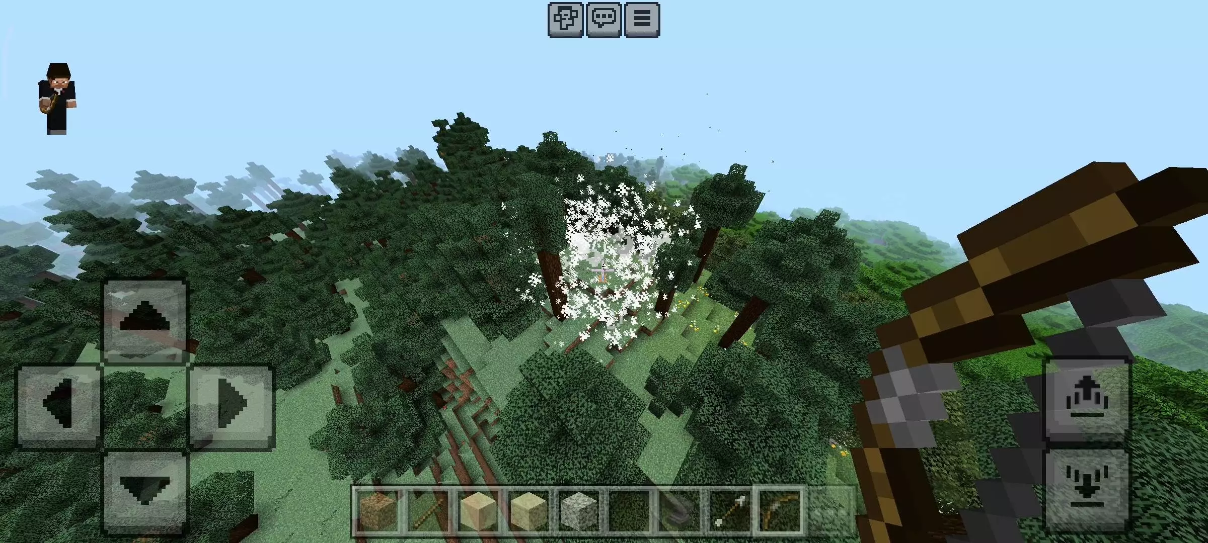 The mod comes with two power levels so you can choose chaos based on what you’re doing. Grenade Mode is the default, and it’s meant to be “useful without ruining your world.” Your arrows pop small explosions on hit, which makes it handy for clearing trees, opening space while mining, or handling mobs without flattening everything around you. It’s designed to feel powerful, but still survivable and not instantly map-ending.