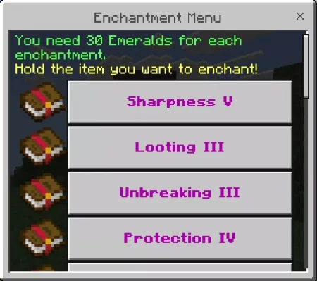 When you’re ready to use it, you hold the item you want to enchant, then tap or click the Enchanter NPC to open the menu and choose your enchantment. That “pick what you want” flow is the main appeal—it’s fast, clean, and easy to repeat when you’re gearing up for tougher fights. NPC Enchanter Mod fits especially well on multiplayer worlds where everyone wants a reliable enchanting spot, or on RPG-style maps where an NPC-based system just feels more natural.