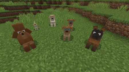 Dogs Mod is a simple “make your world feel more alive” addon, because it adds six new dog variants you can actually use as real companions, not just decoration. They spawn in nearly every biome, so you’ll run into them naturally while exploring instead of having to hunt one specific spot for hours.