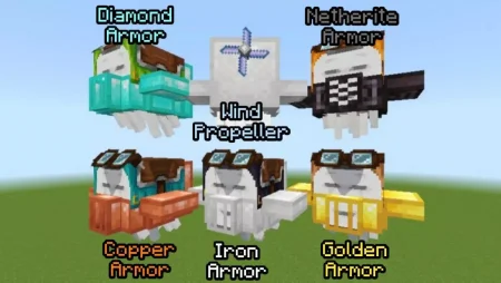 The gear is the fun part. You can strap on Ghast Armor with variants that scale from copper up to netherite, so you’re not stuck with one look or one power level. If you’re using your Happy Ghast for getting around, the Wind Propeller is the hype item because it boosts speed by three times, which makes long trips feel way less painful.