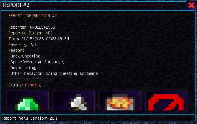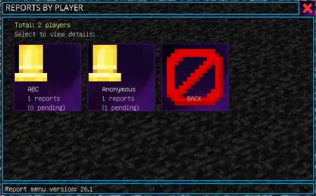 The best part is how easy it is for regular players. It uses Bedrock UI forms, so reporting doesn’t turn into “open notes app, type a paragraph, hope an admin sees it.” You just open the menu, pick the player, and submit the report in a clean, interactive way. On the admin side, it’s built around simple tag commands, which keeps management lightweight and avoids the whole “install extra tools, configure a million things” headache.