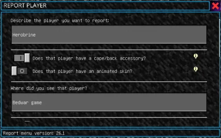 Player Report Menu Mod fits perfectly on survival servers, Realm-style worlds, or any community map where you want the vibe to stay friendly without needing a full-time mod team watching chat 24/7. It won’t magically stop trolls from joining, but it makes it way easier to catch problems early and handle them fast, which is honestly what keeps a server fun long-term.