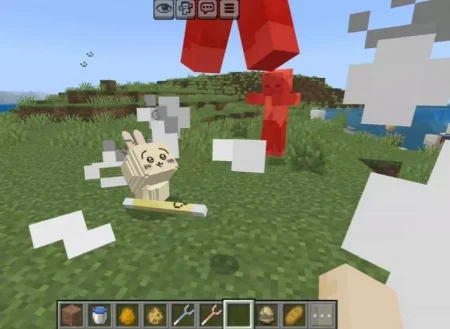 Chikawa Mob Mod is basically the “cute pets that aren’t useless” addon. It’s an authorized Bedrock port of the Chiikawa Java mod by Dwinovo, and it drops those trending characters into your world as companions you can tame and bring everywhere. The taming is simple but has personality—Hachiware likes a Cornflower, Chikawa wants a White Tulip, and the newer update also lets you tame creatures using any cooked foods like bread or cooked beef, which makes it way easier in a normal survival start.