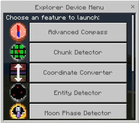 Then you’ve got the nerdy-but-amazing helpers: Chunk Detector for chunk coordinates and boundaries (huge for farms and redstone-ish planning), Coordinate Converter for Nether/Overworld math based on where you’re standing, and Moon Phase Detector that tells you the current moon phase plus slime spawn rate in swamps. Entity Detector is also clutch—within a 25-block radius it counts passive mobs, hostile mobs, players, and dropped items, which is great for checking if a cave is stacked with enemies or if your area is getting laggy from item spam.