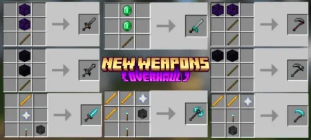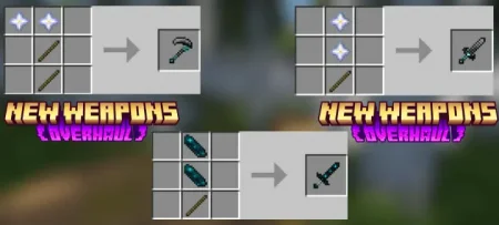 Then you’ve got the darker side: Sculk Sword throws out an echo wave with sculk spread, which fits that creeping, corrupt feel. The Demon line is pure control and pressure—Demon Sword traps with an abyssal cage and wither, and the Demon Scythe pulls with soul drain. Demon Fire variants add burn and binding effects, with different flavors like possession sigils, infernal brands, and reaper-style binds. Blue Demon Fire weapons shift into prism/hex visuals with slows, staggers, and exhausting spiral seals, while Black Demon weapons lean into void dominion, darkness, and heavy weakening drains. Even the Rascal Sword keeps things tricky with a blink burst, and the Top Demon Sword and Scythe sound like the “boss tier” picks with royal dominion fire pressure and a reaper rite ritual pull. New Weapons Overhaul Mod is basically a full weapon fantasy kit for Minecraft Bedrock—pick a theme, learn the crowd control style, and turn normal fights into little ritual duels.