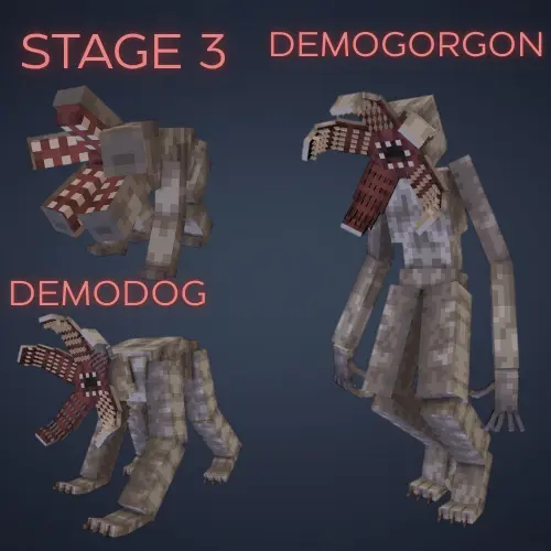 The Demodog progression is a whole mini arc: eggs hatch into Demodog Stage 1 (12 health, not aggressive), then Stage 2 (50 health, climbs walls), then Stage 3 (60 health, aggressive and climbs), leading into the full Demodog (90 health, fast, wall-climbing). Demobats can spawn from portals too, and even though they’re called one of the weaker mobs, they still hit hard with 21 damage. Demogorgon sits higher up the threat ladder with 110 health and strong speed, keeping exploration tense anytime a portal is nearby.