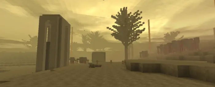 The addon tries to keep the difficulty “fair” with savepoints—little star-like checkpoints that activate keepInventory and respawn you back at that spot when you die. They show up around boss structures so you’re not rage-running back across a dimension every attempt. One big warning: the Deep-Dark dimension forces you into adventure mode until you kill its boss, an ancient warden, so you can’t just dig your way out of trouble. Dimension themes range from Ruined Wastes and Skylands to Evergoing Caverns, Templar’s Desert, Nuclear Lands, Algids (endless winter), the Deep-Dark, and the final realm SummerSet, where the three final bosses wait. Boss structures also “call out” with beacon hints and distance cues, but generation can be unstable, so it’s worth approaching carefully and not clipping in too early.