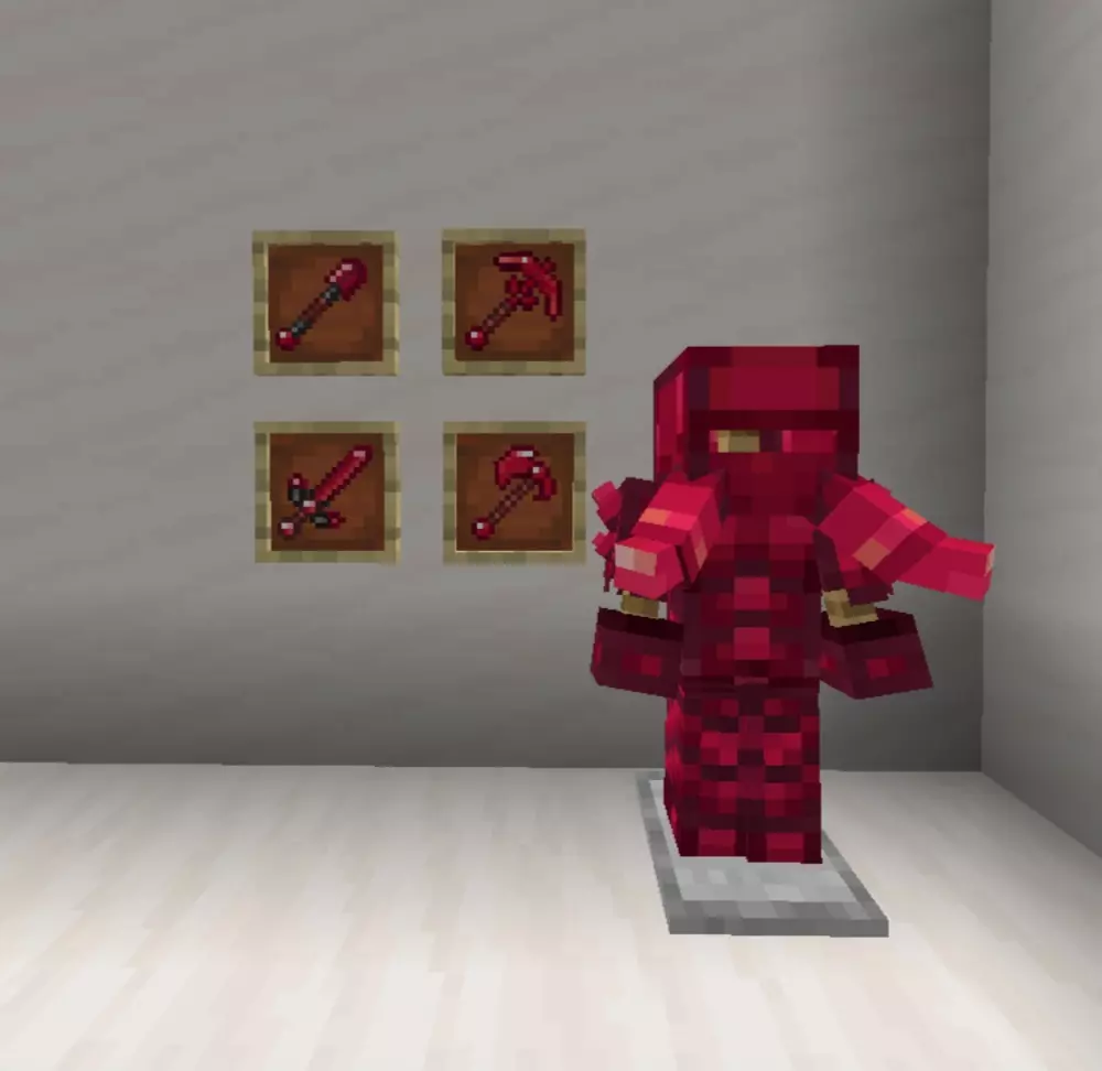 The main appeal is the new ore-based gear. The addon brings in multiple fresh materials, including Platinum, Ruby, Onyx, and Sapphire, with full tool and armor sets tied to them. That gives you more reasons to stay underground longer, compare what you want to craft next, and build your survival loadout around more than the usual ore routine. Since it also adds storage blocks and crafting recipes, the new materials feel like part of the world instead of just loose items dropped into your inventory.