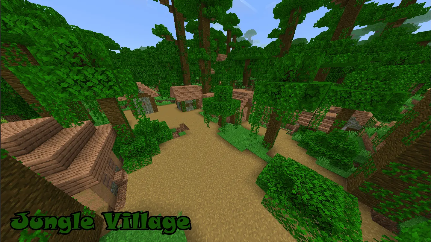 The new villages are designed to stay close to the vanilla style, but they’re adapted to match their biome better. That includes places like Jungle, Swamp, Mesa, Forest, Cherry Grove, Roofed Forest, Pale Garden, Ice Plains Spikes, Mesa Bryce, Bamboo Jungle, Mangrove Swamp, and Birch Forest. That makes world exploration feel less repetitive, because finding a village in a strange biome actually feels fresh instead of being the same desert or plains stop again.