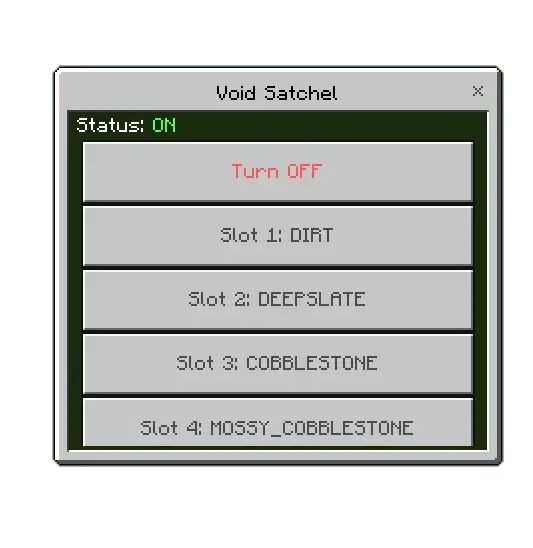 Void Satchel Mod mine Today, 02:37 10 Addons 26 / Addons 1.21 Void Satchel Addon that will bring order to your inventory.Installation guile:- Download file Addon;- Use minecraft- Open the downloaded file to install;- Activate the settings;- Play with the new mod!void-satchel-.mcaddon [9.97 Kb] (downloads: 0)