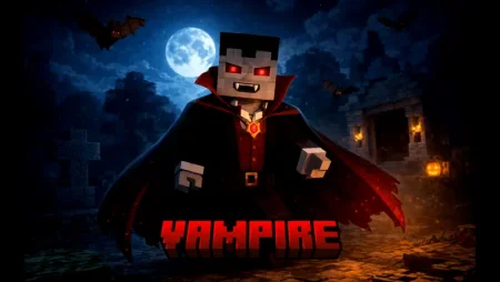 VAMPIRE (KnightShadow) Mod adds a simple vampire toggle to Minecraft Bedrock/MCPE: sneak to activate Vampire mode, then use your powers to summon a cursed bat that goes after your enemies.