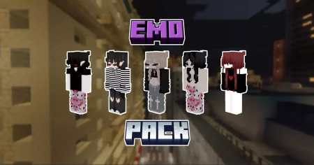 EmoPack Skin Pack brings seven high-detail, HD emo-style skins to Minecraft Bedrock, each built like a moody character portrait for survival, PvP, or roleplay when you want your vibe to hit different.