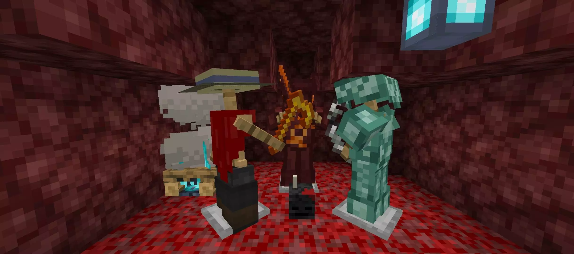Cosmetics + Mod lets zombies, skeletons, and piglins drop wearable cosmetics you can repair with leather on an anvil or buy from a new cosmetic villager, giving your Minecraft Bedrock survival world way more drip to chase.