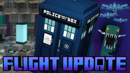 Bedrock Who Mod (Doctor Who Mod) (Flight Update) adds multiple TARDIS variants, tons of Doctor Who enemies, sci-fi blocks and décor, ray guns and knives, huge themed structures, and “cracks in time” events that can reward rare minerals or spawn hostile mobs in Minecraft Bedrock.