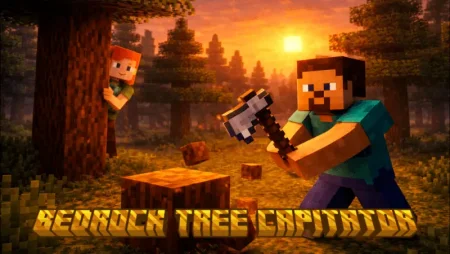 Bedrock Tree Capitator Mod is a Minecraft Bedrock/MCPE addon that helps you chop trees faster and cleaner, making it way easier to avoid floating tree mess and speed up wood farming in survival worlds or on busy servers.
