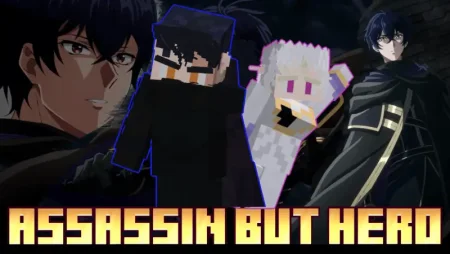 My Status as an Assassin Obviously Exceeds the Hero's Mod brings Oda Akira into Minecraft Bedrock as an overpowered anime assassin who hunts monsters on sight and can rarely be tamed with a netherite ingot to join your team.