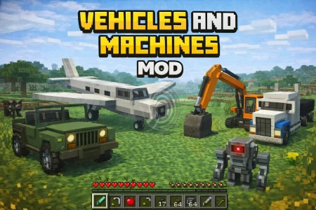 Vehicles and Machines Mod is a huge Minecraft Bedrock/MCPE vehicle + workshop addon with a massive fleet (up to 482 vehicles total) including racecars, police variants, classic cars, taxis, and emergency vehicles, plus shop machines like a lathe, mill, grinder, toolboxes, and more for roleplay builds.