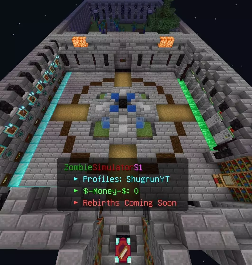 Zombie Simulator Map is built around that super satisfying loop of “kill, sell, upgrade, repeat.” You’re thrown into a world where zombies are basically your paycheck. Every fight drops stuff like rotten flesh, iron, and gold, and instead of stashing it in chests forever, you haul it back to the Safezone and cash it out. Your inventory turns into your wallet, so every run feels like you’re stacking profit, not clutter.